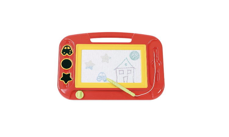 Avec cette ardoise magique magnétique les petits pourront créer de magnifiques chefs-d’oeuvre et laisser libre cours à leur fantaisie à tout moment. Des empreintes de tampons permettent d’ajouter des « fioritures » sur le tableau magnétique. Pour commencer un nouveau dessin tirer simplement la coulisse.
