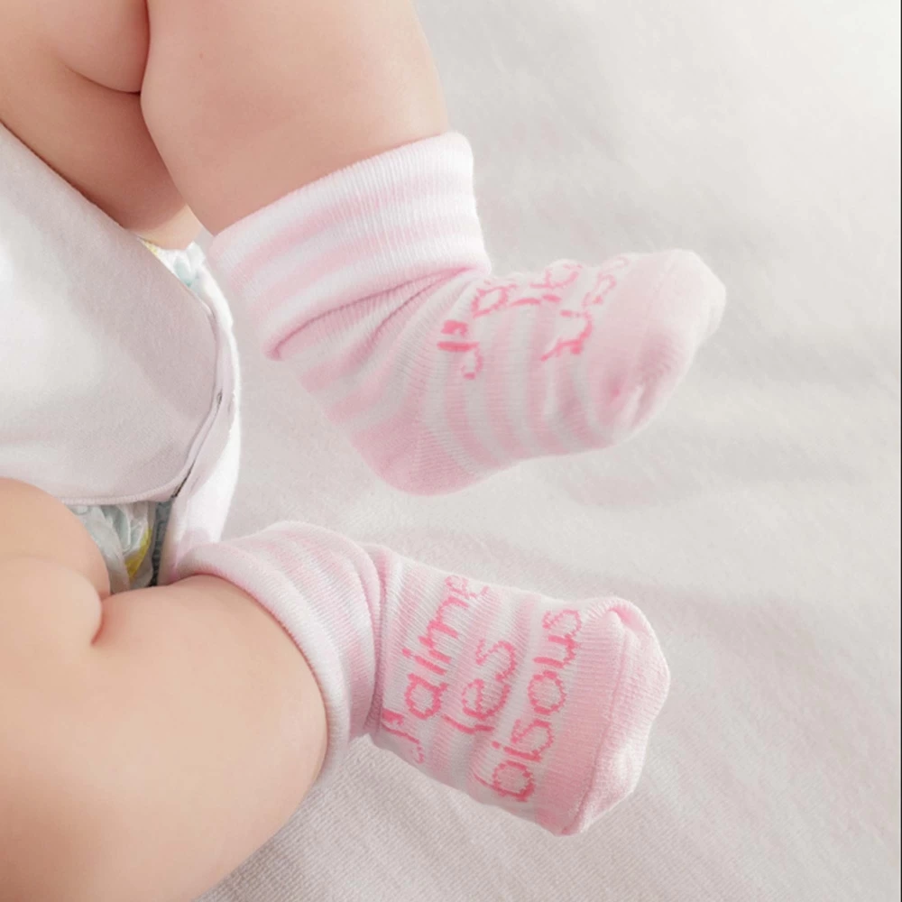 Chaussettes élastiquées rose – J’aime les bisous