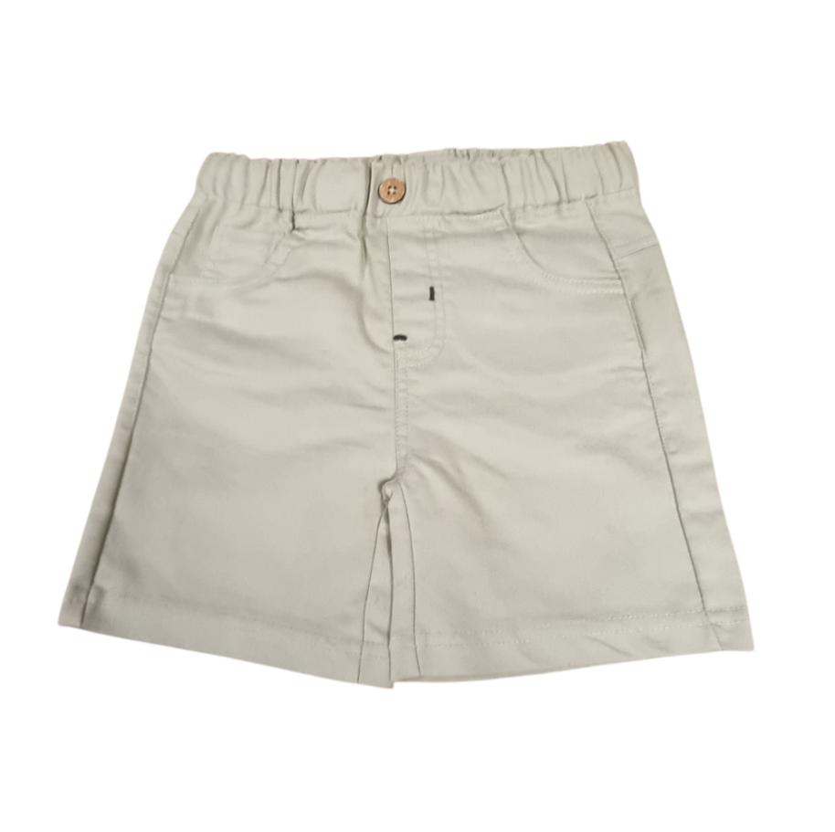 • Bermuda de couleur kaki avec taille élastiquée, poches sur le devant et derrière.