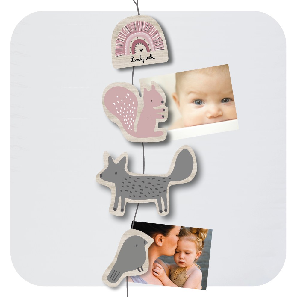 Guirlande porte photos “rainbow rose” de chez Lovely tribu en bois de peuplier conçue et fabriquée en France.