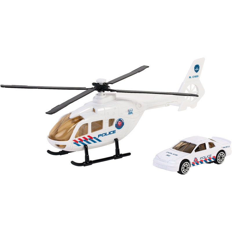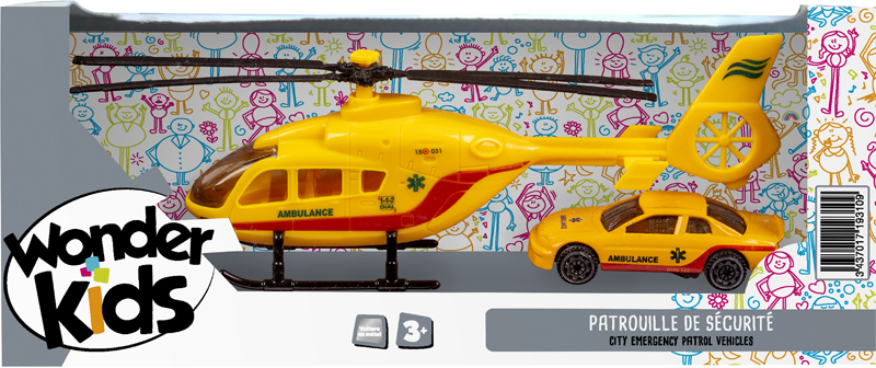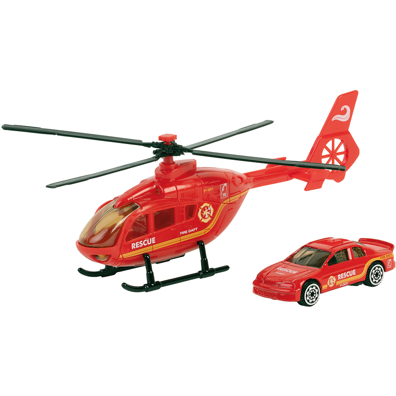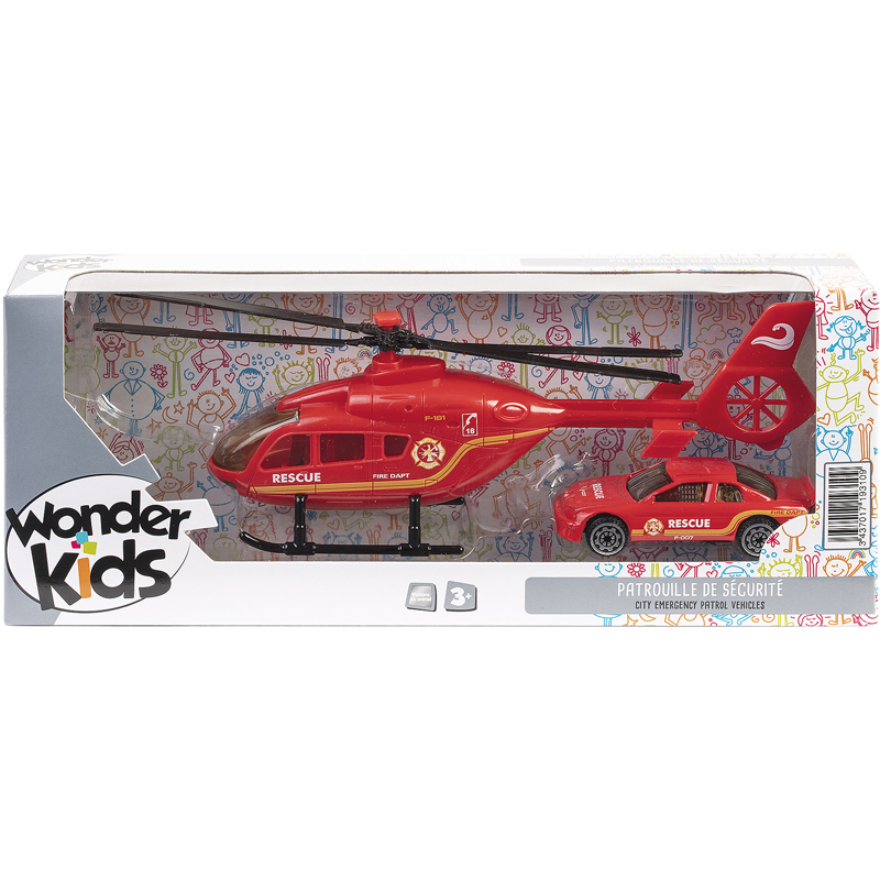 Patrouille et sauve ta ville avec l’hélicoptère et la voiture de secours en métal.