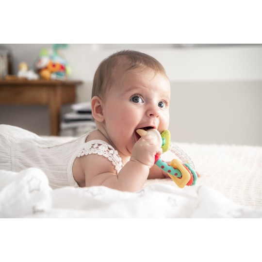 Aux couleurs vives pour attirer l’attention de bébé, des matières souples et dures à mordiller pour soulager les gencives douloureuses.