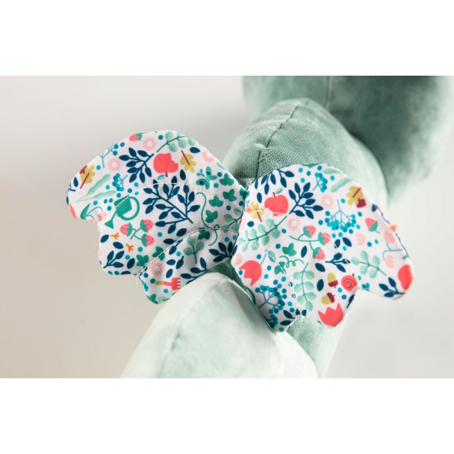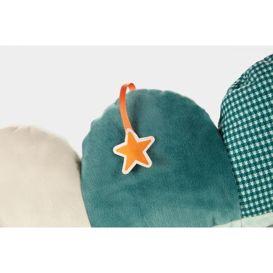 Joe le dragon n’est pas seulement un joli tour de lit coloré qui accompagne votre bébé dès la naissance, il peut se transformer en jouet d’éveil grâce à ses nombreuses activités : hochet dans la tête, papier bruissant, miroir… Il fait des bruits très rigolos pour amuser bébé.