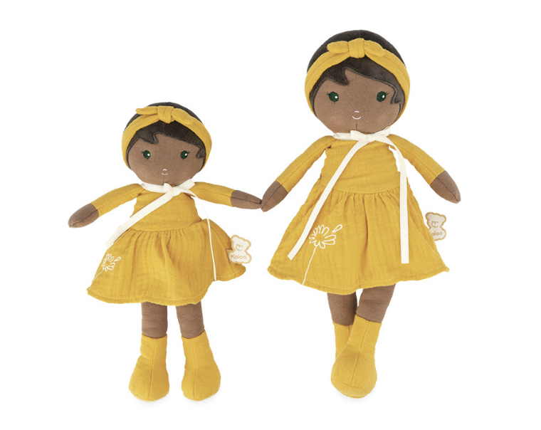 Naomie, la poupée en tissu aux couleurs du soleil ! Dans son format 32 cm, cette adorable poupée en tissu Kaloo se caractérise par sa robe en mousseline de coton aux tons colorés.