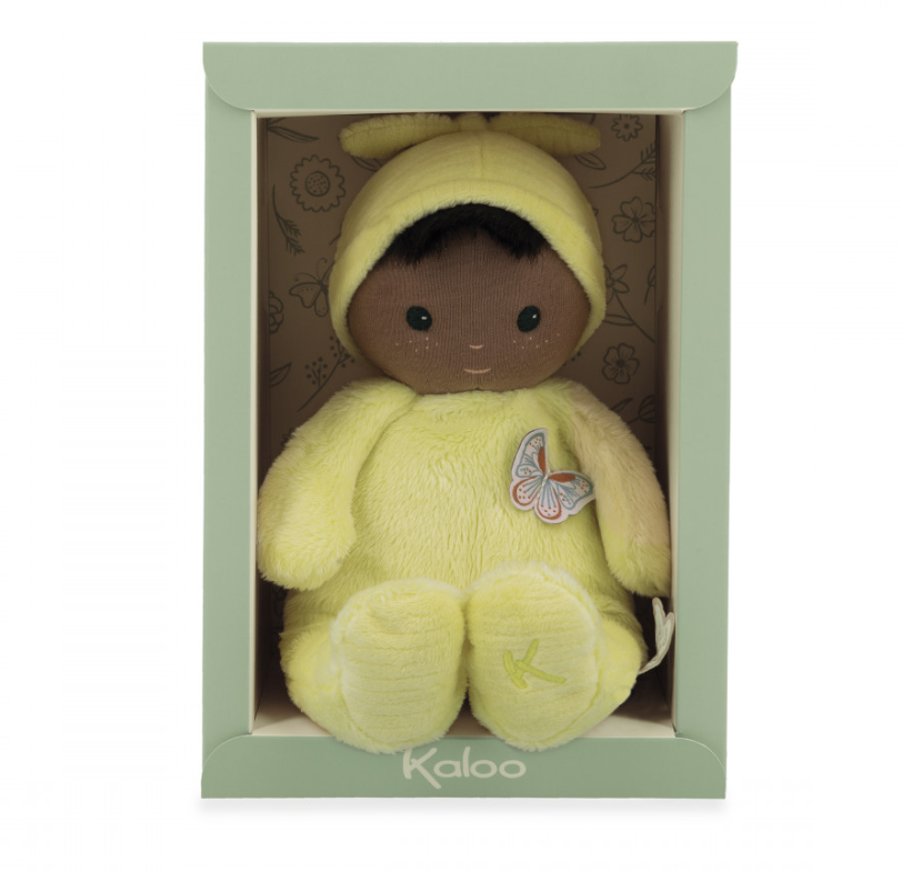 Le torse de cette petite poupée est orné d’un papillon délicat, qui rappelle la légèreté et la grâce des fleurs : un détail vraiment enchanteur. L’étiquette en forme de papillon est une invitation à développer la dextérité et la curiosité sensorielle de bébé. Chaque interaction avec Bébé Mimosa stimule les sens en douceur et encourage le développement tactile des jeunes enfants.