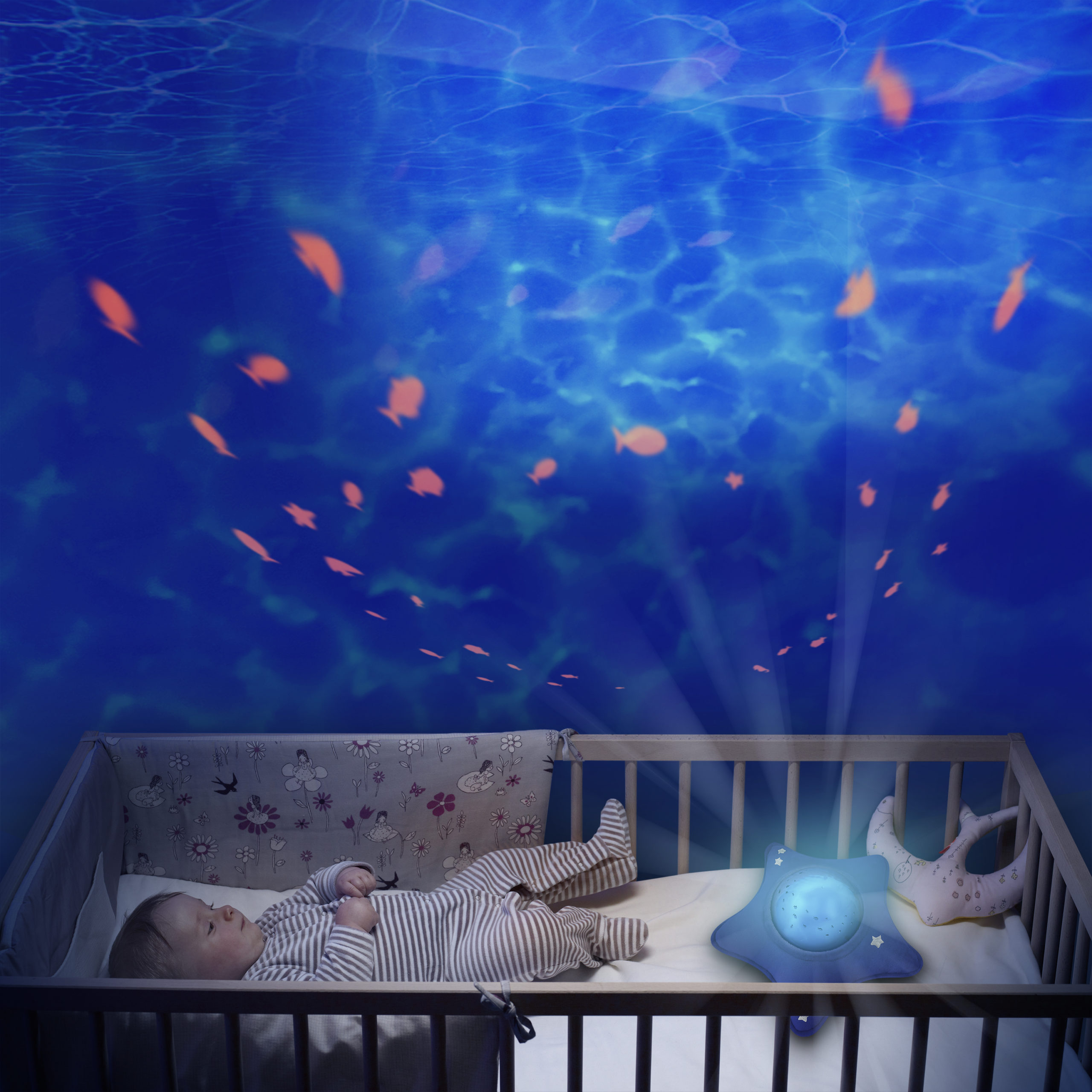 Au choix, une berceuse toute douce ou une musique marine pour s’immerger dans l’univers aquatique.